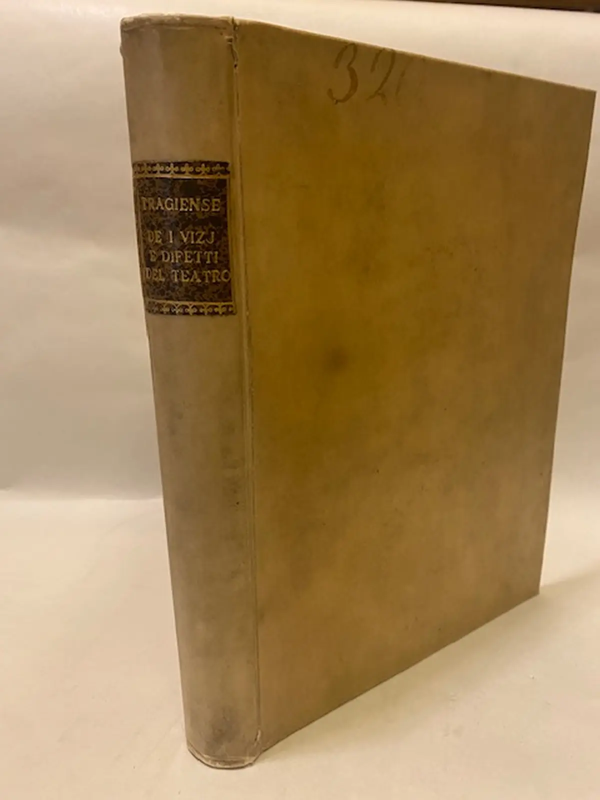 Solida legatura coeva in piena pergamena coeva con tassello al dorso. Tagli colorati, buonissime condizioni salvo qualche leggera brunitura in alcune pagine. Edizione originale e unica di quest'importante opera settecentesca sul teatro. Frontespizio in rosso e nero con vignetta allegorica incisa al centro. Numerosi capilett. figurati, testatine e finalini incisi. 7 tavv f.t. incise in rame di cui una più volte ripieg. Pianta del teatro romano, pianta del teatro greco, prospetto e scena del teatro romano. Pietro Torelli sculp. Le altre 4 tavole incise da Gio Batta Girardenghi raffigurano bassorilievi in marmo, Corniola, Orfeo e le Baccanti, Mercurio e Diana , strumenti musicali. Sc. D.