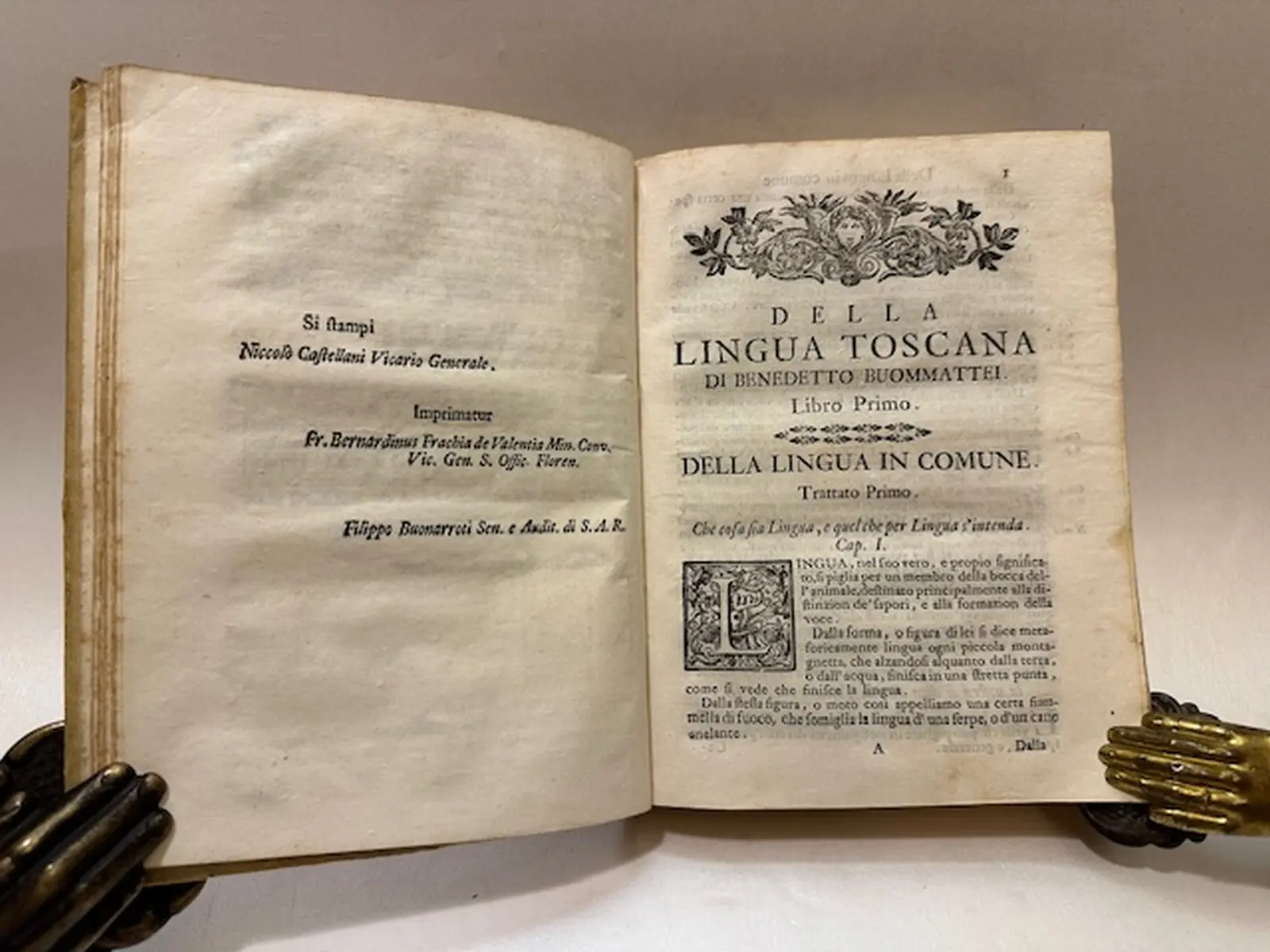 Della lingua toscana, di Benedetto Buommattei pubblico lettore di essa nello studio pisano, e fiorentino – libri due – impressione quarta. Coll’aggiunta d’un discorso non più ristampato, d’alcune note, e dlla vita dell’autore.