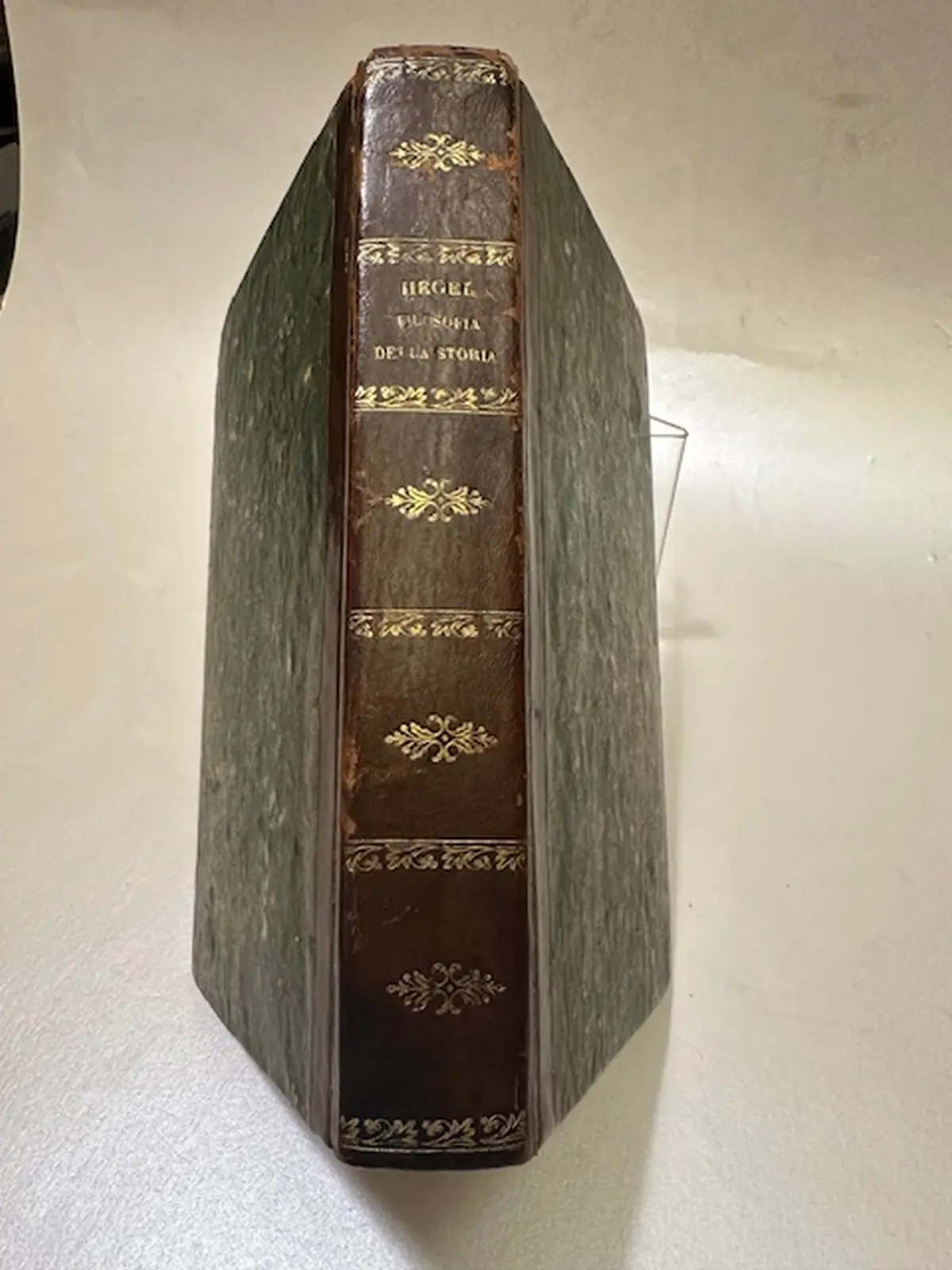 Legatura coeva in mezza pelle, piatti marmorizzati, dorso con titolo e fregi floreali in oro, tagli colorati, buone condizioni generali. Prima edizione italiana dell'opera di F. Hegel, impressa in Canton Ticino dalla Tipografia e libreria Elvetica; compilata da Edoardo Gans e tradotta dal tedesco da G. B. Passerini. In appendice, con autonomo frontespizio: La questione religiosa fra i cattolici e i protestanti considerata nell'interesse morale e civile dei popoli lettera di Fortunato Passavanti. Cfr. Graesse V, 320 e Brunet, IV, 695. SC. S.