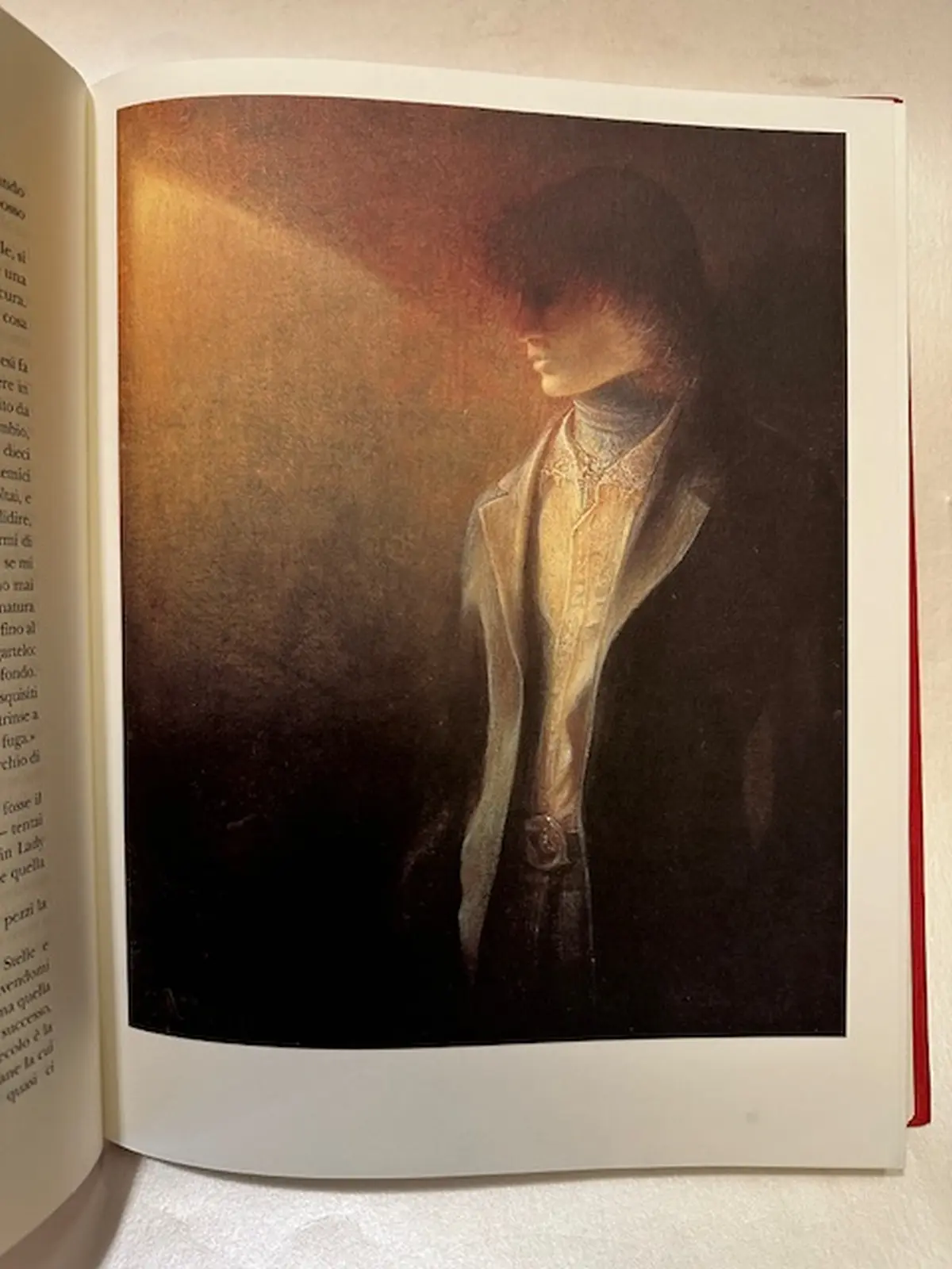 Bella edizione con legatura in seta rossa e immagine illustrata aplicata al piatto. Condizioni ottime. A piena pagine le belle illustrazioni di Agostino Arrivabene così come le carte di guardia. Edizione fuori commercio che segue l'edizione italiana di "The picture of Dorian Gray" nella traduzione di Benedetta Bini e pubblicato da Feltrinelli editore, stampato ora nel 2004 per Telecom Italia da Amilcare Pizzi. Sc. I