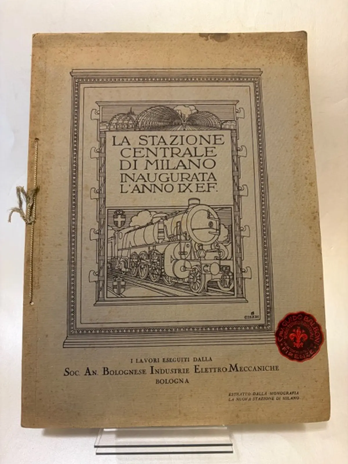 Brossura con immagine disegnata da Cisari al piatto anteriore, cucintura a filo originale al dorso, buone condizioni. Estratto dell'opera con identico titolo a cura della Saipem azienda di ascensori e montacarichi di Bologna. All'interno una bellissima immagine più volte ripiegata della veduta esterna e lato della stazione Centrale di Milano. Altre immagini fotografiche nel testo raffiguranti i luoghi e le macchine all'interno della stazione ove venivano collocati gli ascensori e i montacarichi. Etichetta e timbro del Cav. Guido Balboni per la ditta Saipem. Sc. V.