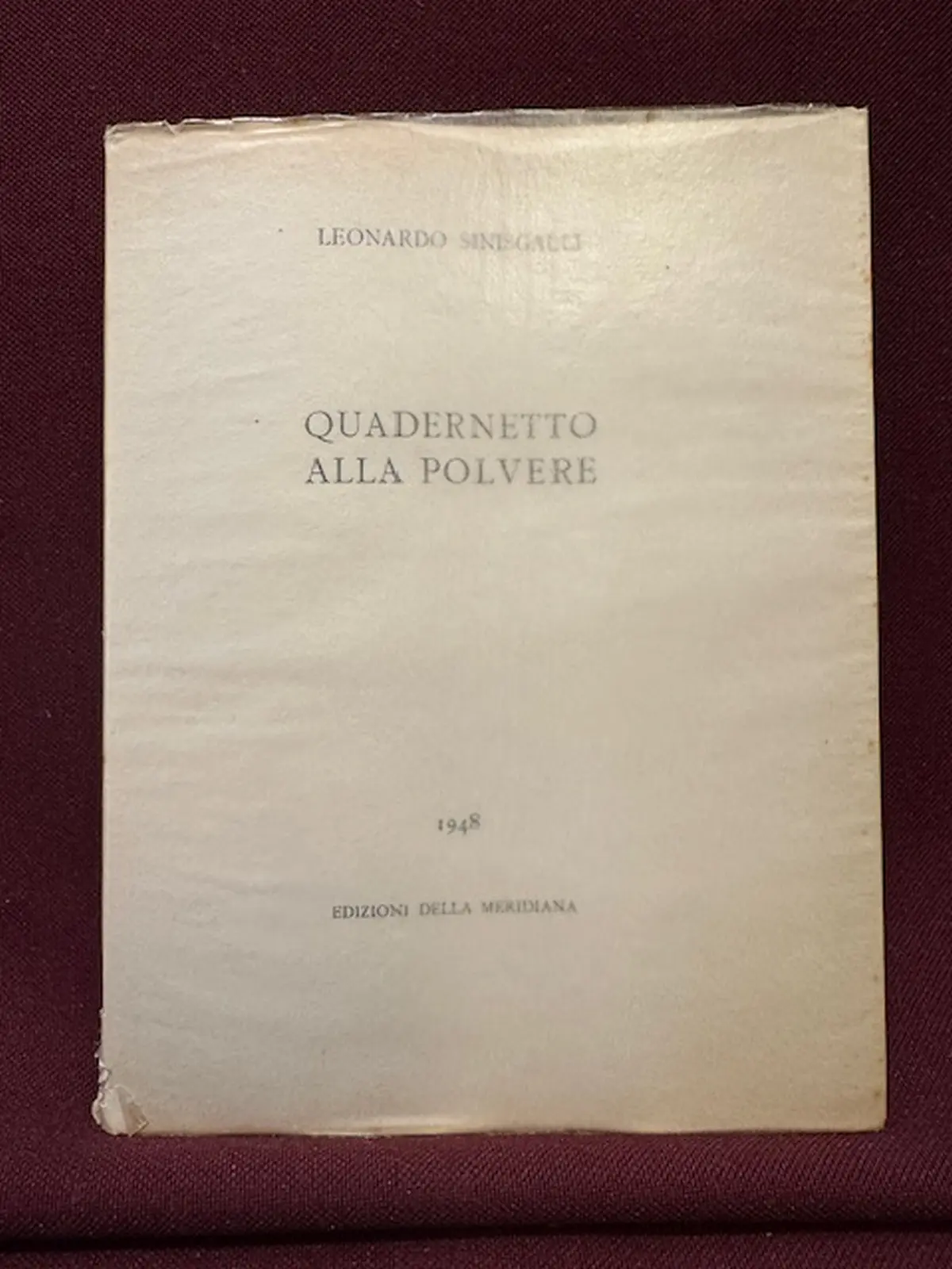 Brossura editoriale e sovraccoperta, una pagina extra aggiunta per collocare un importante exlibris nobiliare. Edizione originale, tiratura su carta pesante e di dimensioni più grandi. Copia con firma e data (Milano 18 gennaio 1948) dell’autore. Esemplare XVII appartenente ai soli 50 stampati su carta grande; in più che buone condizioni. Secondo le consuetudini delle edizioni della Meridiana, del “Quadernetto” oltre alla tiratura nel formato tascabile in-24 (850 copie di cui le prime 100 su carta uso mano) furono tirate anche 50 copie numerate in numeri romani (ns. XVII), su carta grande di pregio e di formato più grande. Cfr. Gambetti Vezzosi p. 865