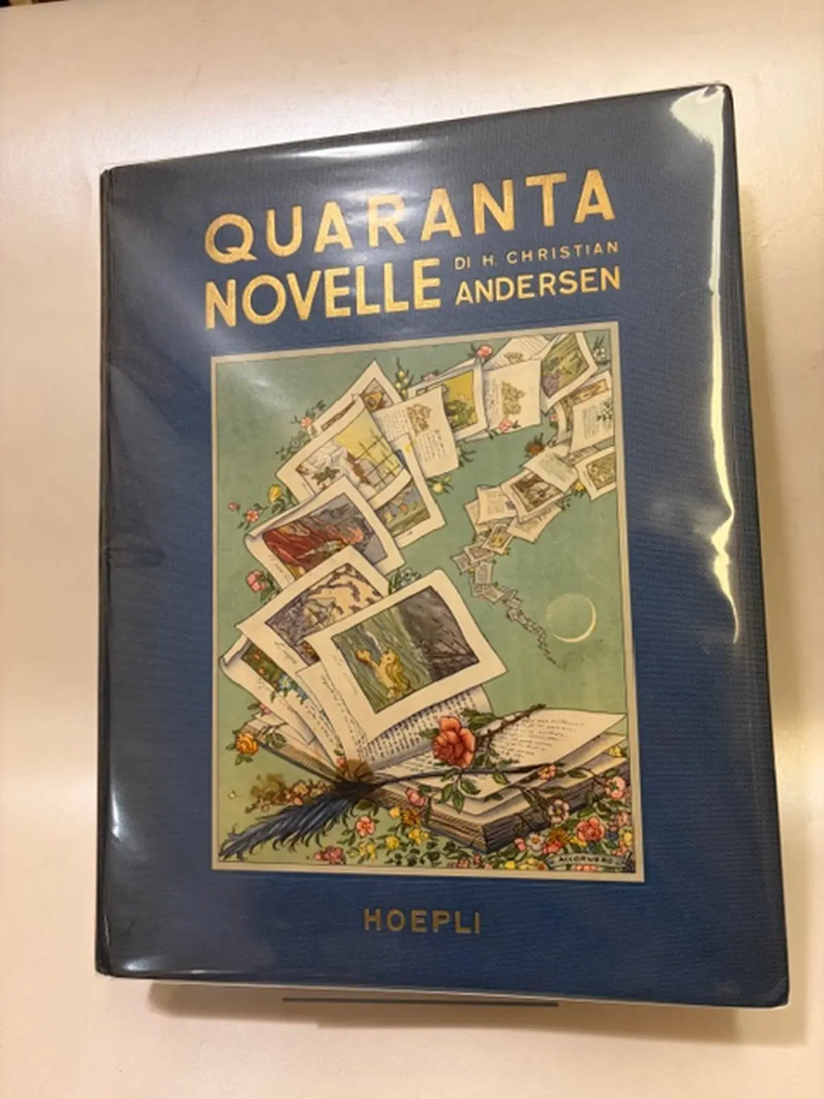 Legatura in tutta tela con bella illustrazione al piatto, titolo in oro al piatto e al dorso, condizioni buone, completo delle belle tavole a colori f.t. di Vittorio Accornero che illustrano le 40 fiabe di andersen. Sc. I.