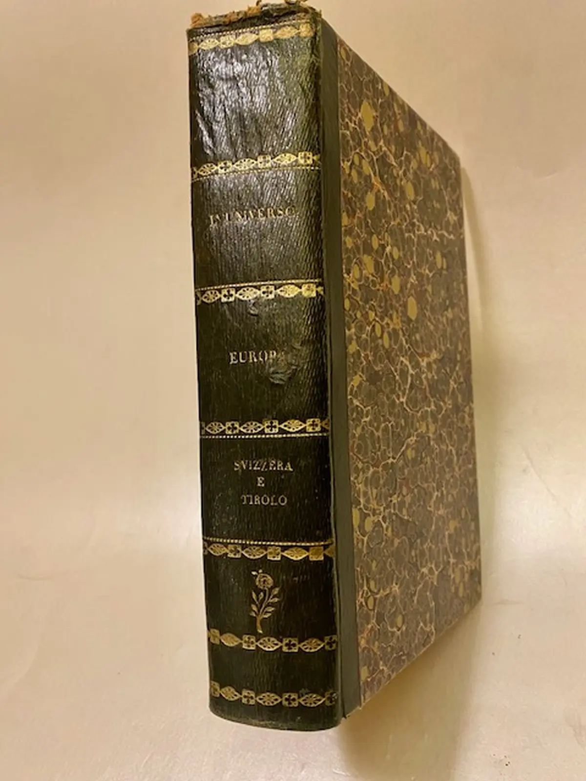 Legatura coeva mezza pelle con titoli e fregi oro al dorso, ottime codizioni. Completo di una carta geografica e 92 incisioni di cui 80 svizzere e 12 del Tirolo. Prima edziione italiana. Serie L'Universo o storia e descrizione di tutti i popoli. SC. A.