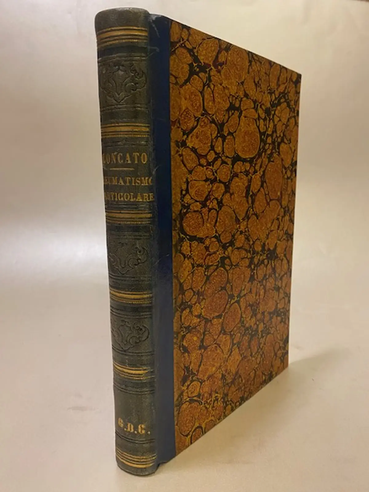 Bella legatura coeva in mezza pelle dorso con titolo e ricchi fregi in oro, piatti in carta marmorizzata, condizioni ottime. Completo di 8 tavole ripiegate a fine volumi di cui tre tabolle e 5 tavole a colori in cromolitografia. Edizione originale. Sc. M.